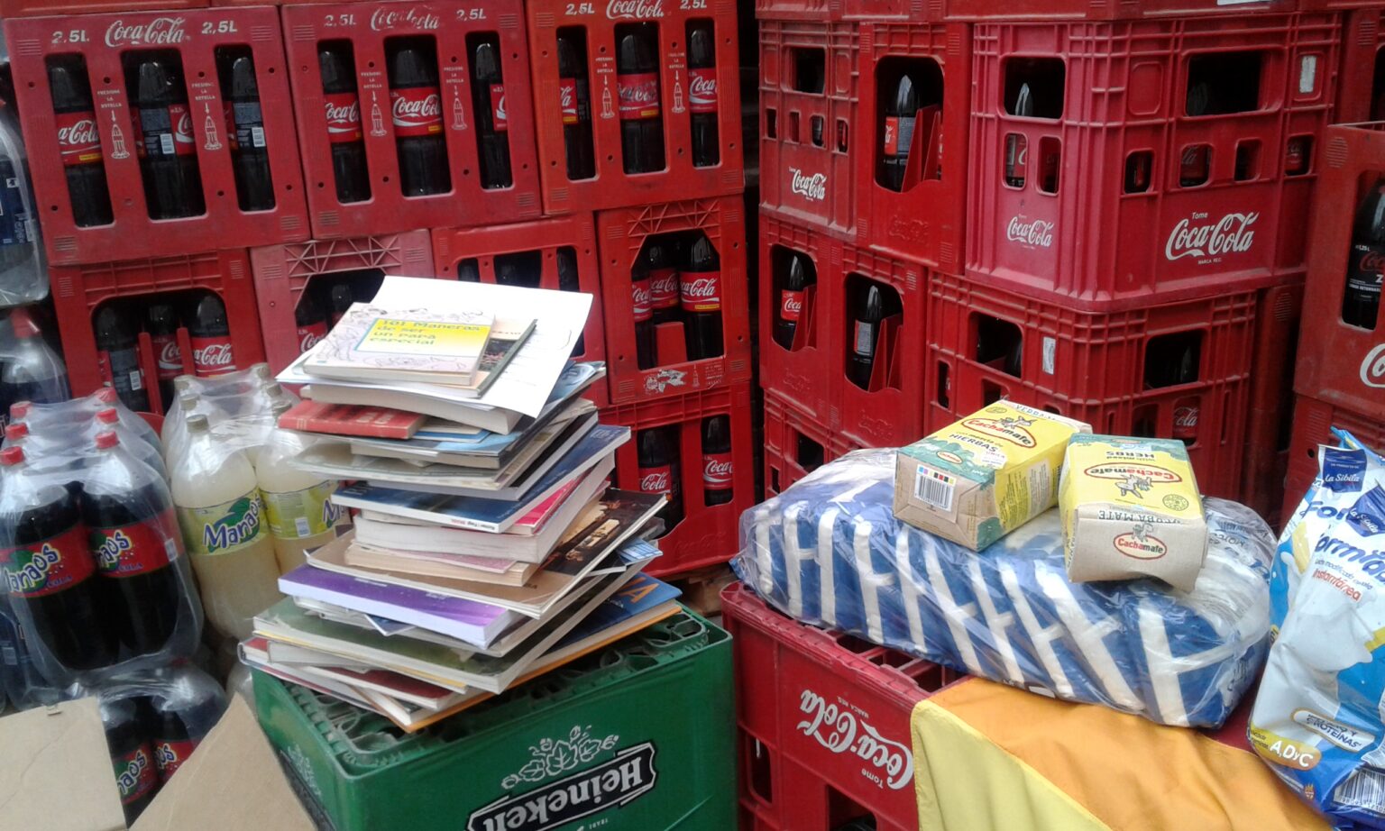 Las donaciones consistieron en cajas de fideos, azúcar, salsa de tomate, leche en polvo, aceite, arroz, té, yerba mate, polenta, lentejas, garbanzos, porotos, lavandina, café y una importante cantidad de libros.
