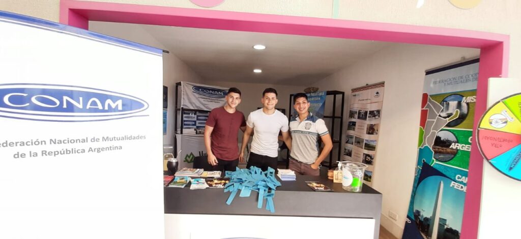 Con un gran equipo de trabajo, los pasados 28, 29 y 30 de enero en el stand de CONAM estuvieron la Presidenta de CONAM, Rosa Rodríguez, el Tesorero, Guillermo Palacios, la Presidenta de la Federación de Cooperativas y Mutuales de la Red Federal de Turismo (FEDETUR), Sandra Rodríguez, y jóvenes dirigentes de la Federación de Mutualidades de Santiago del Estero (FEMSE), entidad en formación, la Asociación Mutual Capital de Santiago del Estero y, por Buenos Aires, de la Asociación Mutual ‘’12 de enero’’ de Pasteleros y la mutual FOCOMFA, quienes transmitieron sus experiencias como jóvenes dirigentes mutualistas, haciendo partícipes a las miles de personas que visitaban el stand  y comentándoles todos los beneficios que tiene el asociativismo.