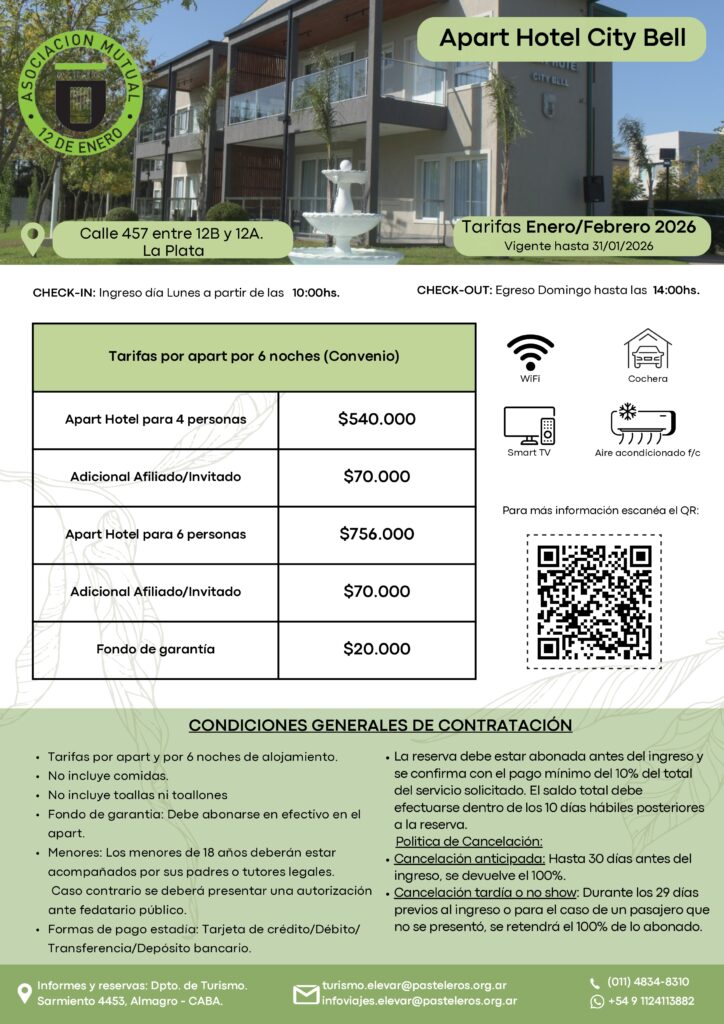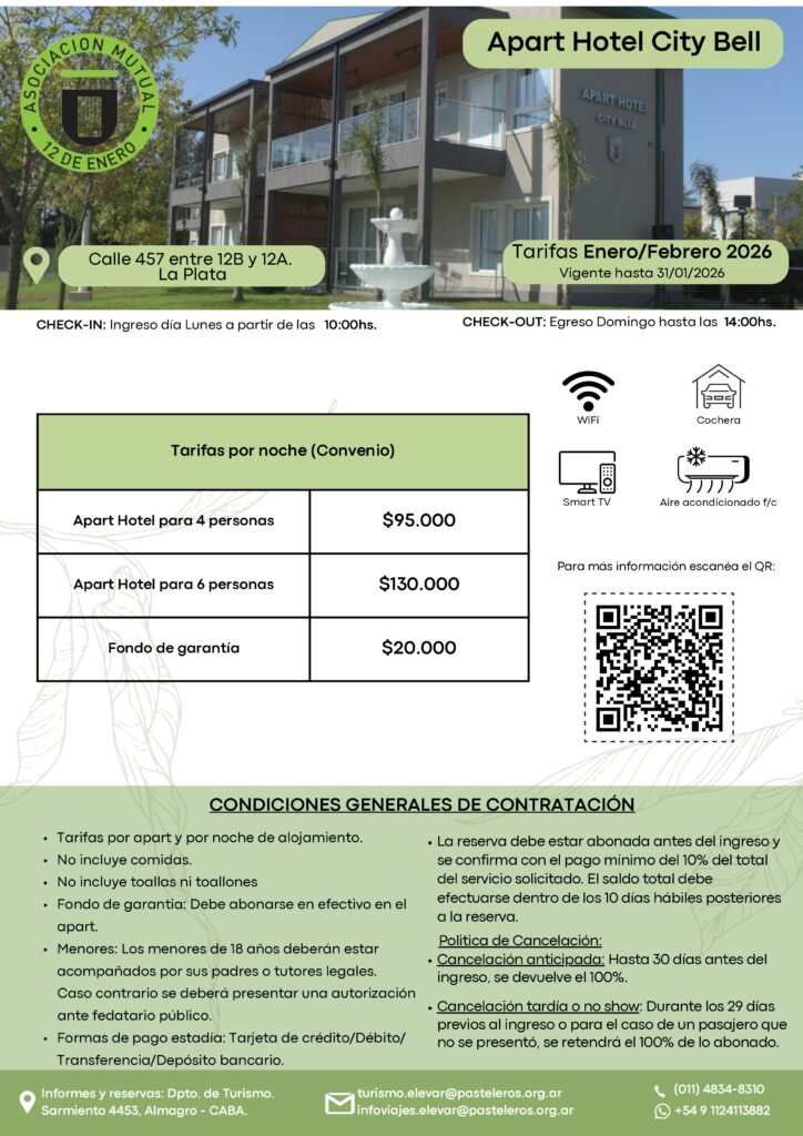 Con la llegada del verano, el descanso y el bienestar se convierten en una prioridad para miles de familias. En ese marco, la Asociación Mutual “12 de Enero” de Pasteleros, entidad adherida a la Federación de Entidades Mutuales de Buenos Aires (FEDEMBA), presenta sus propuestas turísticas para enero y febrero del 2026, destinadas a entidades pertenecientes a las federaciones adheridas a CONAM, con opciones pensadas para disfrutar del merecido tiempo de descanso en entornos cómodos y accesibles.