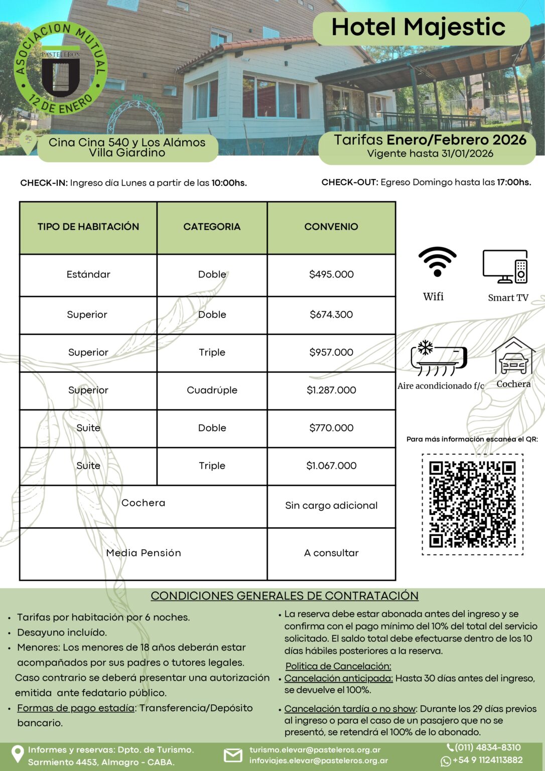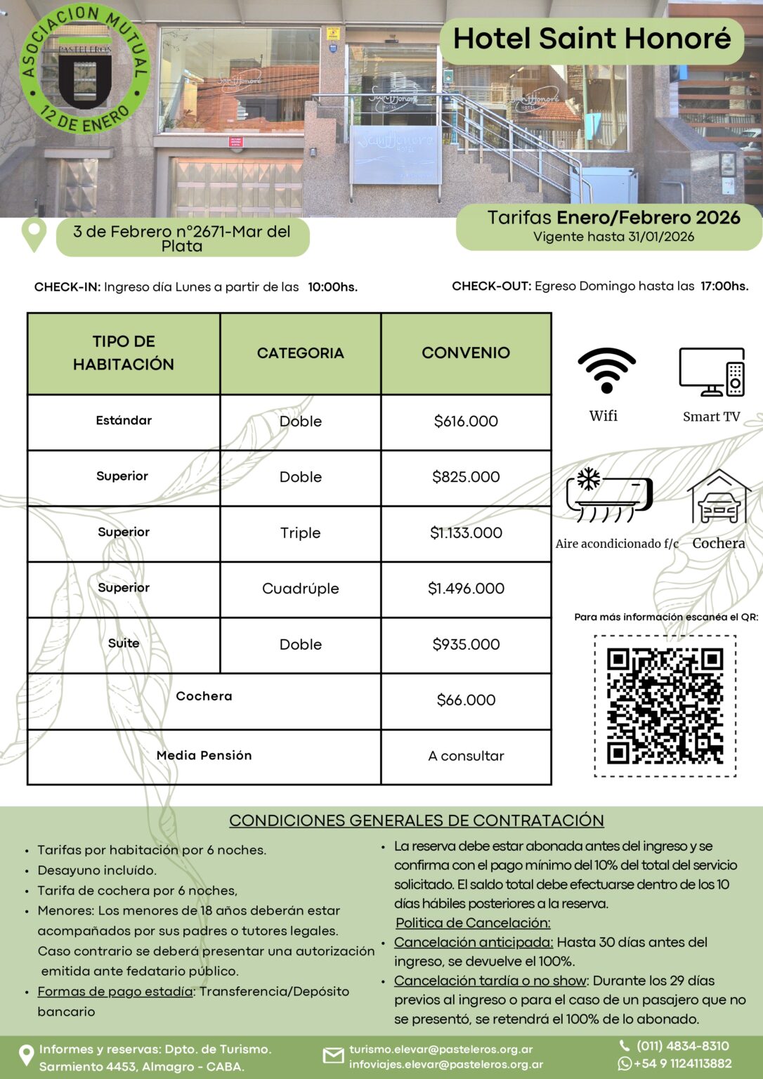 Mails de contacto: turismo.elevar@pasteleros.org.ar, o infoviajes.elevar@pasteleros.org.ar