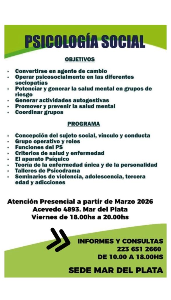 Punto de Encuentro anunció el lanzamiento de la Carrera de Licenciatura en Psicología Social en modalidad presencial en la ciudad de Mar del Plata, una propuesta educativa que reafirma su compromiso con la formación orientada al desarrollo humano, la participación comunitaria y la construcción de lazos solidarios.